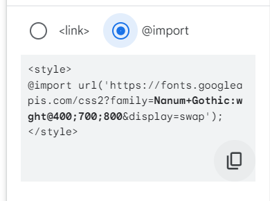 카피해서 붙여넣기(혹은 직접 nanum gothic이라고 써도 됨)