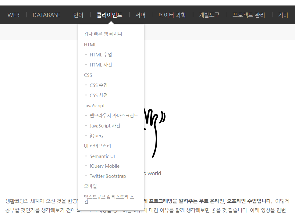 생활코딩 : 개발 공부를 시작할때 제일 많이 접하는 사이트